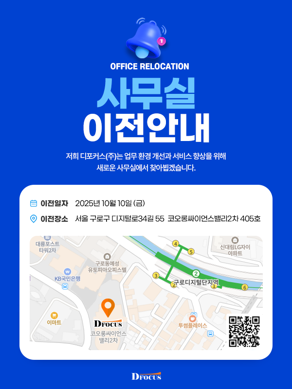 업무 환경 개선과 서비스 향상을 위해 사무실을 이전하게 되어 안내드립니다.